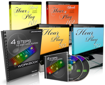 Hear & Play 702, 705, Chords 101 & 102, 4 Steps To Next Level Playing CDs & Workbook. Downloads.